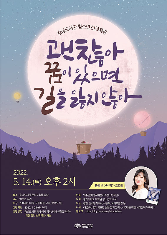 ¹é ÀÛ°¡´Â ¡®±¦Âú¾Æ, ²ÞÀÌ ÀÖÀ¸¸é ±æÀ» ÀÒÁö ¾Ê¾Æ¡¯, ¡®10´ë¸¦ À§ÇÑ »çȸÂü¿© À̾߱⡯ µîÀ» ÁýÇÊÇßÀ¸¸ç, û¼Ò³â ´ë»ó °¿¬À» Ȱ¹ßÇÏ°Ô ÁøÇàÇϰí ÀÖ´Ù.