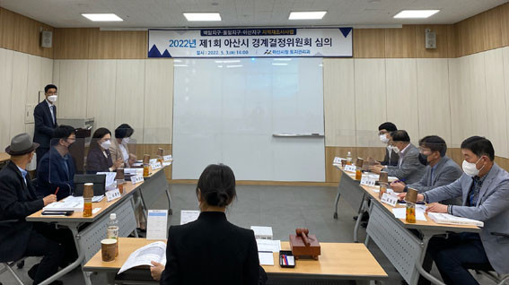 À̹ø ¾Æ»ê½Ã °æ°è°áÁ¤À§¿øÈ¸´Â ¸ñÇý¿ø À§¿øÀå(´ëÀüÁö¹æ¹ý¿ø õ¾ÈÁö¿ø ÆÇ»ç)À» ºñ·ÔÇØ °¨Á¤Æò°¡»ç, ÅäÁö¼ÒÀ¯ÀÚ ´ëÇ¥, ÁöÀûÀçÁ¶»ç ºÐ¾ß Àü¹®°¡ µî 9¸íÀÇ À§¿øÀÌ Âü¼®ÇÑ °¡¿îµ¥ ÁøÇàµÆ´Ù.