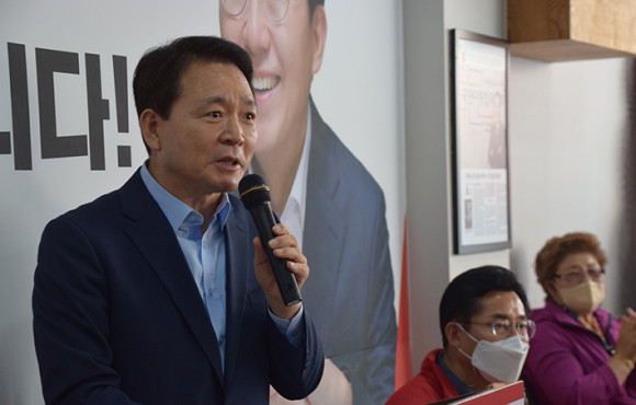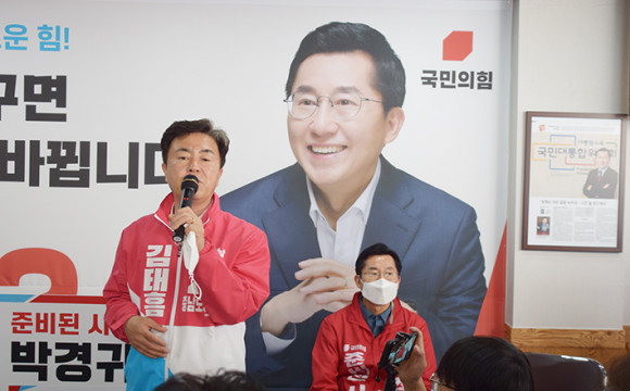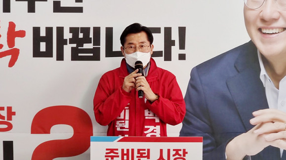 7ÀÏ ¿ÀÈÄ ¿Âõµ¿ ¼±°Å»ç¹«¼Ò¿¡¼ ¹Ú°æ±Í ±¹¹ÎÀÇÈû ¾Æ»ê½ÃÀå Èĺ¸ÀÇ ¼±°Å»ç¹«¼Ò °³¼Ò½ÄÀÌ ¼ºÈ²¸®¿¡ ¿·È´Ù.