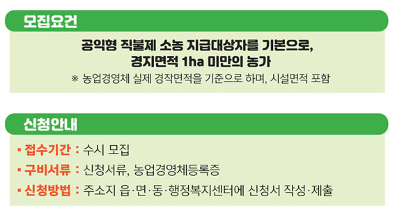 ¾Æ¿ï·¯ ¾Æ»ê½Ã´Â ±Ý³âµµ ½ÅûÇÏ´Â ³ó¾÷ÀÎ ´ë»óÀ¸·Î ÃâÇÏȸ Á¶Á÷ȸ¦ À§ÇÑ ÅëÇÕ±³À° ¹× ÇöÀå ±â¼úÁö¿ø µî ¿ª·®°È ÇÁ·Î±×·¥À» ¿î¿µÇϰí ÀÛºÎü°è ±¸ÃàÀ» À§ÇØ ÇÊ¿äÇÑ ½Ã¼³¡¤Àåºñ¿¡ ´ëÇÑ Áö¿ø°èȹµµ ¸¶·Ã ÁßÀÌ´Ù.