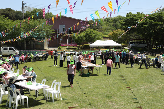 ¡®¿À·¡ ¿À·¡ ÇÔ²² ÇØ ÁÖ¼¼¿ä, »ç¶ûÇÕ´Ï´Ù¡¯¶ó´Â ½½·Î°Ç ¾Æ·¡ °³ÃÖµÈ À̳¯ Çà»ç¿¡¼´Â 1ºÎ¿¡¼ ȸ°©À» ¸ÂÀ¸½Å ÀÔ¼ÒÀÚ ÃàÇÏ¿Í 60¼¼ÀÌ»ó ¾î¸£½Å¿¡°Ô Ä«³×À̼ÇÀ» ´Þ¾Æµå·È°í, 2ºÎ¿¡¼´Â ½Ã¼³ ¼³¸³ 50Áֳ⠱â³ä½ÄÀ» °®°í ¹Ú±âÈ£ ¼³¸³ÀÚ(Àü ´ëÇ¥ÀÌ»ç)¿¡°Ô °ø·ÎÆÐ ¼ö¿©, Àå±â±Ù¼ÓÀÚ Á÷¿ø 3¸í¿¡°Ô ±Ù¼ÓÆÐ ¼ö¿©, ´ëÇ¥ÀÌ»çÀÇ ±â³ä»ç¿Í Àü ½Ã¼³ÀåÀÇ Ãà»ç, ÃàÇÏ ÄÉÀÍ Àý´Ü½Ä°ú Ãà¹èÁ¦ÀÇÀÇ ¼øÀ¸·Î ÁøÇàµÆ´Ù.