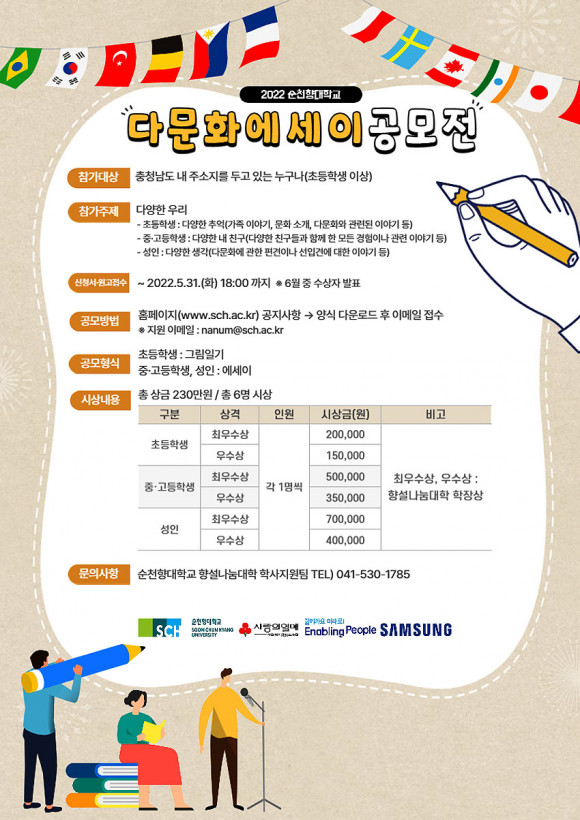 ¼øÃµÇâ´ëÇб³(ÃÑÀå ±è½Â¿ì)´Â ¿À´Â 5¿ù 31ÀϱîÁö ¡®2022 ¼øÃµÇâ ´Ù¹®È ¿¡¼¼ÀÌ °æÁø´ëȸ¡¯ ¿ø°í Á¢¼ö¸¦ ÁøÇàÇÑ´Ù°í 5¿ù 12ÀÏ ¹àÇû´Ù.
