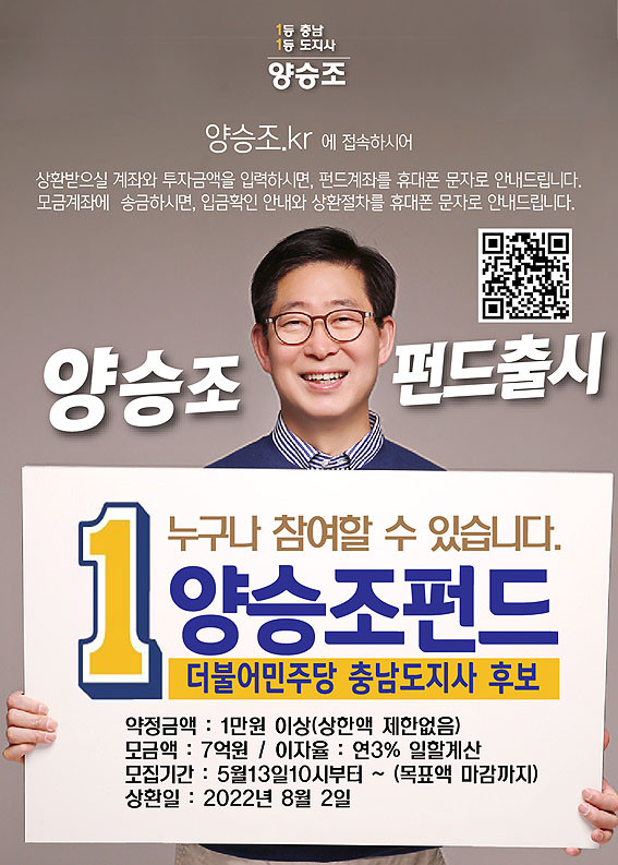 ¾ç½ÂÁ¶ Ãæ³²µµÁö»ç È帰¡ ±ú²ýÇÑ Á¤Ä¡ÀÚ±Ý ¸¶·Ã°ú ¼±°ÅÀÚ±ÝÀÇ Åõ¸í¼ºÀ» À§ÇØ µµ¹ÎÂü¿©Çü ¡®¾ç½ÂÁ¶ ÆÝµå¡¯¸¦ Ãâ½ÃÇÑ´Ù.