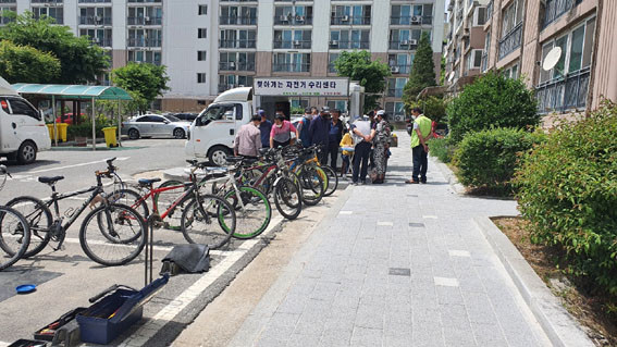 ÀÌ´Â ÀÚÀü°Å Ÿ±â ¿îµ¿À» Ȱ¼ºÈÇϱâ À§ÇØ ÁøÇàÇÑ °ÍÀ¸·Î ¾Æ»ê½ÃÀÇ Áö¿øÀ» ¹Þ¾Æ ÀÔÁֹεéÀÌ °íÀå ³ª¼ ¹æÄ¡Çϰí ÀÖ´Â ÀÚÀü°Å¸¦ ¼ö¸®ÇØÁÜÀ¸·Î¼ °æÁ¦Àû Áö¿ø°ú ÇÔ²² ÀÔÁÖ¹ÎÀÇ °Ç°°ú ³ì»ö ȯ°æÈ°µ¿À» Àå·ÁÇÏ´Â Àϼ®»ïÁ¶ÀÇ È¿°ú¸¦ ¾ò¾ú´Ù.