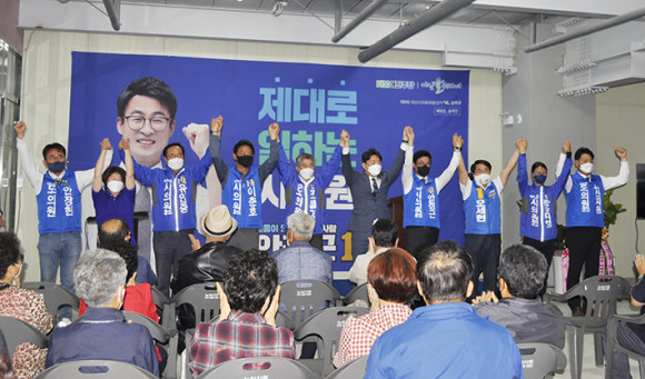 À̹ø °³¼Ò½Ä¿¡¼´Â °ÈÆ½Ä ±¹È¸ÀÇ¿ø, ¿À¼¼Çö ¾Æ»ê½ÃÀå ¿¹ºñÈĺ¸ µîÀ» ºñ·ÔÇÑ ¼ö¸¹Àº ¾Æ»ê½Ã¹ÎµéÀÌ Âü¼®ÇÏ¿© ÀÀ¿ø°ú ÃàÇϸ¦ º¸³Â´Ù.