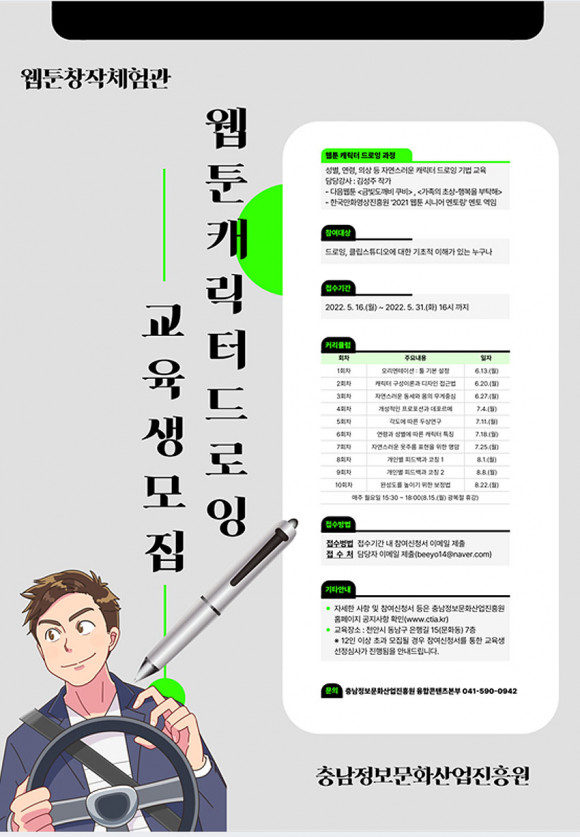 ¡®À¥Å÷ ij¸¯ÅÍ µå·ÎÀ× °úÁ¤(ÃÑ 10ȸÂ÷)¡¯Àº ÀÇ»óÇ¥ÇöºÎÅÍ ¿¬·É°ú ¼ºº°¿¡ µû¸¥ ij¸¯ÅÍ Æ¯Â¡ µî ¸Å·ÂÀûÀΠij¸¯ÅÍ ¿¬ÃâÀ» À§ÇÑ ±³À°ÀÌ ÁغñµÇ¾î ÀÖ´Ù. ¡®À¥Å÷ ½ºÄÉÄ¡¾÷ °úÁ¤(ÃÑ 10ȸÂ÷)¡¯Àº °Ç¹°ÀÇ ³»¡¤¿ÜºÎ, ¼Òǰ ¿¬Ãâ µî À¥Å÷ ¹è°æÀÛȸ¦ À§ÇÑ Æ¯È°úÁ¤À¸·Î ¿î¿µµÈ´Ù.