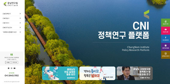 ÀÌ¿¡ ¿¬±¸¿ø °ü°èÀÚ´Â ¡°Ãæ³²¿¬±¸¿øÀº ¿ÃÇØºÎÅÍ ¡®Á¤Ã¥Áöµµ¡¯, ¡®ÀÎÆ÷±×·¡ÇÈ¡¯, ¡®Àü·«°úÁ¦ ¿ä¾à¼ºñ½º¡¯ µî ¿¬±¸¼º°ú È®»êÀ» À§ÇÑ »õ·Î¿î Æ÷¸ËÀ̳ª °³¼±µÈ ÄÜÅÙÃ÷ »ç¾÷À» ÃßÁø Áß¡±À̶ó¸ç ¡°À̹ø ¡®CNI Ç÷§Æû¡¯ ±¸ÃàÀ» °è±â·Î ¿¬±¸¿øÀÌ ¸¸µé¾î³»´Â ¼º°úµéÀÌ Á¦´ë·Î Á¤Ã¥¿¡ ¹Ý¿µµÇ´Â °ÍÀº ¹°·Ð, µµ¹Î¿¡°Ô ½±°Ô Á¢±ÙÇÒ ¼ö ÀÖ´Â ¿Â¶óÀÎ ¼ÒÅë ⱸ°¡ µÉ ¼ö ÀÖµµ·Ï Áö¼ÓÀûÀ¸·Î ¹ßÀü½ÃÄÑ ³ª°¡°Ú´Ù¡±°í ¸»Çß´Ù.