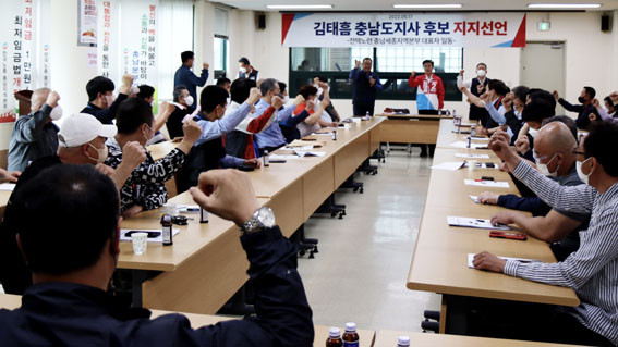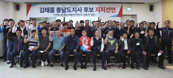 ÀÌ¿Í º°µµ·Î Çѱ¹³ëÃÑ Àü±¹Åýó뵿Á¶ÇÕ¿¬¸Í Ãæ³²¼¼Á¾º»ºÎ ¼Ò¼Ó ´ëÇ¥ÀÚµéÀº 17ÀÏ ÀüÅóë·Ã Ãæ³²¼¼Á¾º»ºÎ ´ëȸÀǽǿ¡¼ ±èÅÂÈì Èĺ¸ ÁöÁö¼±¾ð½ÄÀ» °³ÃÖÇÏ°í ¡°¡®³ëµ¿ÀÚÀÇ Ä£±¸¡¯ ±èÅÂÈì È常¦ ÁöÁöÇϱâ·Î °áÁ¤Çß´Ù¡±°í ¼±¾ðÇß´Ù.