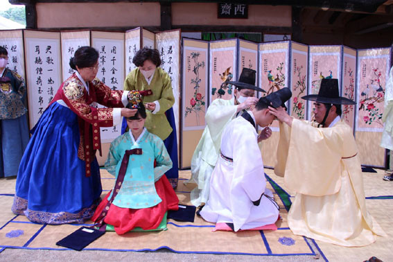 ¡®°ü·Ê¡¯´Â ¼ºÀÎÀÌ µÇ´Â ³²ÀÚ¿¡°Ô °¡Á·°ú »çȸ ³ª¾Æ°¡ ±¹°¡¿¡ ´ëÇÑ Ã¥ÀÓÀ» °Á¶ÇÏ´Â ÀǽÄÀ¸·Î ¸Ó¸®¸¦ ¿Ã·Á »óÅõ¸¦ Ʋ°í 3¹øÀÇ °üÀ» ¾º¿ì°í ¿ÊÀ» °¥¾ÆÀÔÈ÷´Â ¡®°¡°ü·Ê¡¯¿Í ¼ú·Î½á ¿¹¸¦ ¿Ï¼ºÇÏ¸ç ¼ºÀÎÀÌ µÆÀ½À» Çϴÿ¡ °íÇÏ´Â ¡®ÃÊ·Ê¡¯, ¼ºÀÎÀÌ µÅ Á¶»óÀÌ ³»·ÁÁØ ¸ö°ú À̸§À» Àß Áö۶ó´Â Àǹ̿¡¼ À̸§ ´ë½Å ºÎ¸¦ ¡®ÀÚ¡¯(í®)¸¦ ³»·ÁÁÖ´Â ¡®¸íÀÚ·Ê¡¯ ¼ø¼·Î ÁøÇàµÈ´Ù.