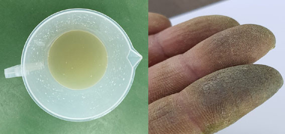 Å丶Åä ¼öÈ® ÀÛ¾÷ ½Ã ¼Õ¿¡ ²öÀûÀÌ´Â ³ë¶õ»ö ¹°ÁúÀÌ ¹¯¾î ÀÖ´Â °ÍÀ» ÈçÈ÷ º¼ ¼ö Àִµ¥, ÀÌ´Â °¡Áö°ú ÀÛ¹°¿¡¼ ³ª¿À´Â ¾Æ½Ç½´°¡¶ó´Â õ¿¬¼ººÐÀÌ´Ù.