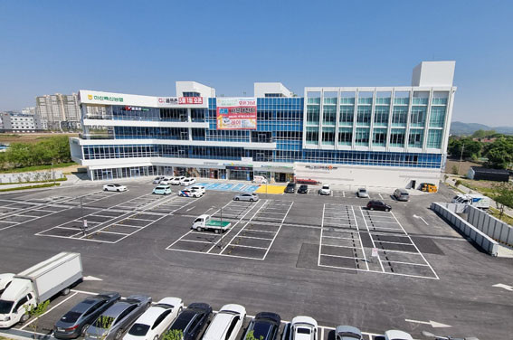 ÁöÇÏ 1Ãþ¿¡´Â Çб³±Þ½ÄÀ» À§ÇÑ À°°¡°ø¼¾ÅÍ ¹× â°í, 1ÃþÀº Çϳª·Î¸¶Æ®, 2ÃþÀº ±ÝÀ¶Á¡Æ÷ ¹× NHÄ«Æä, 3ÃþÀº ±³À°¿¬±¸Áö¿ø¼¾ÅÍ¿Í »ç¹«°ø°£, 4ÃþÀº ¾Æ»êÃàÇù Á¶ÇÕ¿øµéÀÌ »çÀ°ÇÑ Çѿ츦 µµÃà.°¡°ø.ÆÇ¸ÅÇϰí ÀÖ´Â °í±Þ½Ä´çÀÎ ÇÑ¿ìÇÁ¶óÀÚ¡°¿Â±Ã¡±(ÇÑ¿ìÀü¹®Á¡)µîÀ¸·Î ±¸¼ºµÅ ÀÖ´Ù.