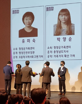À̹ø ¼ö»óÀڴ û¾ç°¡Á·¼¾ÅÍ¿¡¼ ¿Ü±¹ÀÎÁ¤ÂøÁö¿øÀ» µ½´Â À¯¹Ì¼÷ ÆÀÀå(ÇàÁ¤¾ÈÀüºÎÀå°ü ǥâ)°ú ¾ÆÀ̵¹º½Àü´ãÀ» ¸ÃÀº ¹Ú¾ç¼ø ¾¾(µµÁö»ç ǥâ)ÀÌ´Ù.