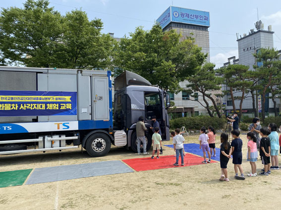 Çѱ¹±³Åë¾ÈÀü°ø´ÜÀº ȹ°Â÷·® ÁÖº¯¿¡ ŸÆ÷¸° ±×¶ó¿îµå ½ÃÆ®¸¦ »ç¿ëÇØ ¿ìȸÀü½Ã ¿îÀüÀÚ¿¡ ÀÇÇÑ º¸ÇàÀÚÀÇ »ç°¢Áö´ë¸¦ Á÷Á¢ °æÇèÇÒ ¼ö ÀÖµµ·Ï ÁغñÇß´Ù.