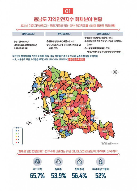 ÃÖ±Ù Ãæ³²¿¬±¸¿ø Àç³¾ÈÀü¿¬±¸¼¾ÅÍ Á¶¼º ¼¾ÅÍÀåÀº ¡®Ãæ³² ½Ã±ºº° Áö¿ª¾ÈÀüÁö¼ö ÈÀçºÐ¾ß Ãë¾àÁö¿ª°ú °³¼±¹æ¾È¡¯À» ÁÖÁ¦·Î ¹ß°£ÇÑ Á¤Ã¥Áöµµ¿¡¼ ¡°ÈÀç·Î ÀÎÇÑ ÀθíÇÇÇØ´Â Àα¸¼ö¿¡ ºñ·ÊÇÏ´Â °ÍÀÌ ¾Æ´Ï¶ó ¿ÀÈ÷·Á ±º´ÜÀ§ Áö¿ª¿¡¼ ´õ¿í Ãë¾àÇÑ °ÍÀ¸·Î ³ªÅ¸³µ´Ù¡±¸ç ¡°¸ðµç µµ¹ÎÀÇ ¾ÈÀüÇÑ »ýȰÀ» À§ÇØ Áö¿ªº° À§Çè¼öÁØ Áø´ÜÀ» ÅëÇÑ ¸ÂÃãÇü Á¤Ã¥ ´ë¾ÈÀÌ ÇÊ¿äÇÏ´Ù¡±°í ¸»Çß´Ù.