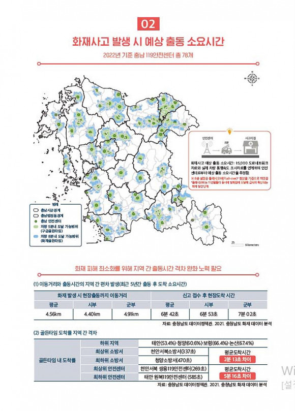 ¶ÇÇÑ ¡°»ó´ëÀûÀ¸·Î ¿ø°Å¸® Ã⵿ÀÌ ºÒ°¡ÇÇÇÑ °øÁÖ½Ã, žȱº, ±Ý»ê±º µîÀº ¾ÈÀü¼¾ÅÍ À§Ä¡ Á¶Á¤°ú °°Àº ±¸Á¶Àû ¹æ¹ýÀÌ º´ÇàµÇ¾î¾ß ÇÏÁö¸¸ ¿¹»ê»óÀÇ ¾î·Á¿ò µîÀÌ ÀÖ¾î Çö½ÇÀûÀ¸·Î´Â ÇàÁ¤º¹Áö¼¾ÅÍ µî¿¡ ¼Ò¹æÀåºñ ¹× Àη ÆÄ°ß ¿î¿µ°ú °°Àº ¹æ¾ÈÀÌ ´ë¾ÈÀÌ µÉ ¼ö ÀÖ´Ù. ¶ÇÇÑ, Ÿ Áö¿ª¿¡ ºñÇØ Ã⵿µµÂø ½Ã°£ÀÌ ´Ê°í ±¸Á¶ ½ÇÀûµµ ³·°Ô ³ªÅ¸³ª´Â û¾ç±º, ³í»ê½Ã µîÀº Ã⵿ü°è¿Í µ¿¼±¿¡ ´ëÇÑ Á¾ÇÕÀû ºÐ¼® ¹× ´ëÀÀ ¹æ¾È ¸¶·ÃÀÌ ÇÊ¿äÇÏ´Ù¡±°í Á¦¾ÈÇß´Ù.