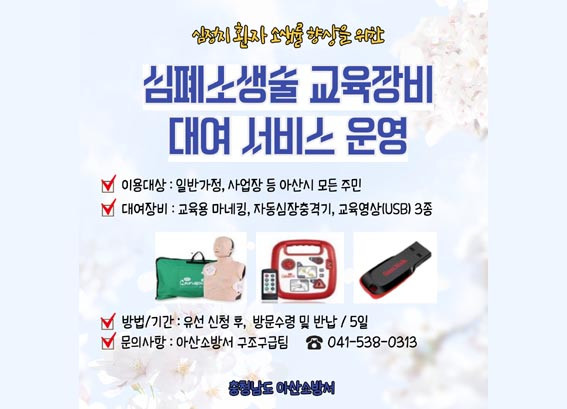 ¾Æ»ê½Ã¹ÎÀÌ¸é ´©±¸³ª ´ë¿© °¡´ÉÇϰí, ´ë¿© Àåºñ·Î´Â ±³À°¿ë ¸¶³×Å·(¼ºÀÎ, ¿µ¾Æ), ±³À°¿ë ÀÚµ¿½ÉÀåÃæ°Ý±â µîÀÌ ÀÖÀ¸¸ç, ±â°£Àº ÃÖ´ë 5ÀÏÀÌ´Ù.
