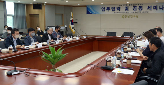 À¯µ¿ÈÆ Ãæ³²¿¬±¸¿øÀåÀº ¡°Æ¯È÷ ³ó¾îÃÌÁö¿ªÀº °í·ÉÈ, Áö¿ª ¼Ò¸ê µî ÇöÀç Á÷¸éÇϰí ÀÖ´Â ¸¹Àº ¹®Á¦µéÀÌ ÀÖ´Ù¡±¸é¼ ¡°À̹ø Çѱ¹³óÃÌ»çȸÇÐȸ¿ÍÀÇ Çù¾àÀ» °è±â·Î Ãæ³²Áö¿ª ³ó¾îÃÌÀÇ »õ·Î¿î Ȱ·Î¸¦ ¸ð»öÇÒ ¼ö ÀÖ´Â ´Ù¾çÇÑ ´ë¾ÈµéÀÌ µµÃâµÇ±æ ¹Ù¶õ´Ù¡±°í ¸»Çß´Ù.