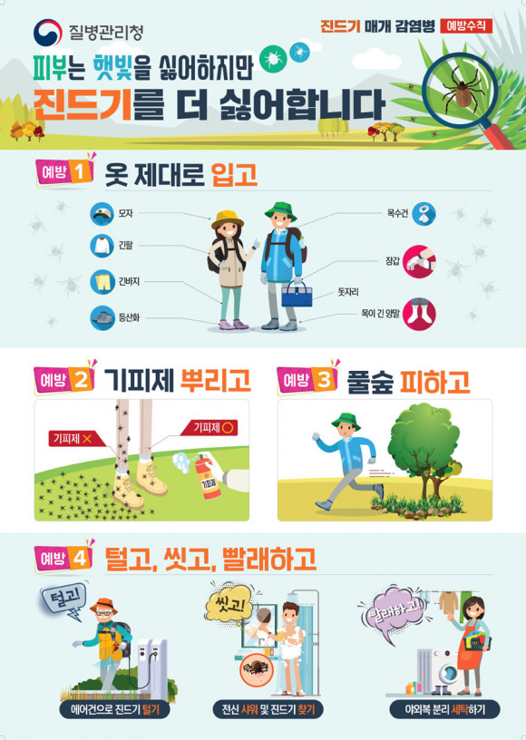 SFTS´Â ÁÖ·Î 4~10¿ù¿¡ SFTS ¹ÙÀÌ·¯½º¸¦ º¸À¯ÇÑ ÂüÁøµå±â¿¡ ¹°·Á ¹ß»ýÇÏ´Â ÁúȯÀ¸·Î »ýȰ ¼Ó °Å¸®µÎ±â¿Í ¾ß¿ÜȰµ¿ ½Ã ±ä ¿Ê Âø¿ë ¹× ¿ÜÃâ ÈÄ ¸ñ¿åÇÏ°í ¿Ê °¥¾ÆÀÔ±â µî ¿¹¹æ ¼öÄ¢À» ÁؼöÇÏ´Â °ÍÀÌ Áß¿äÇÏ´Ù.
