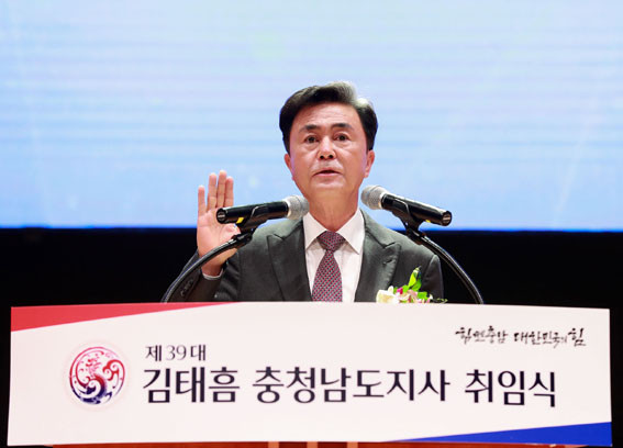 ¹Î¼±8±â Ãæ³²µµÁ¤À» À̲ø ±èÅÂÈì Á¦39´ë Ãæ³²µµÁö»ç°¡ 7¿ù 1ÀÏ µµÃ» ¹®¿¹È¸°ü¿¡¼ ÃëÀÓ½ÄÀ» °®°í, Èû½ëÃæ³² °³¸·À» ¾ÈÆÆ¿¡ ¼±¾ðÇß´Ù.