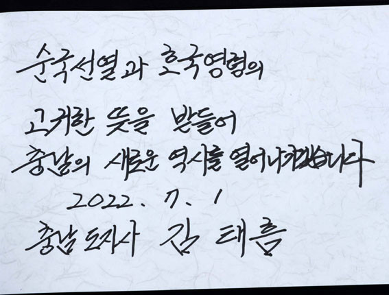 ±è Áö»ç´Â ³¡À¸·Î ¡°Ãæ³²ÀÇ ÇØ°á»ç·Î¼ Ãæ³²¿¡ Å« ÀϵéÀ» ÀÌ·ç±â À§ÇØ, µµ¹ÎÀÇ ÇູÀ» À§ÇØ ÇÒ ¼ö ÀÖ´Ù´Â ½Å³äÀ¸·Î È¥½ÅÀÇ ³ë·ÂÀ» ´ÙÇϰڴÙ. ¶Ò½ÉÀ¸·Î Èû½ëÃæ³²À» ±¸ÇöÇϰí, ¾àÀÚ¿Í ÇÔ²²ÇÏ´Â µû¶æÇÑ µµÁ¤À» ÆîÄ¡°Ú´Ù¡±°í ¹àÇû´Ù.