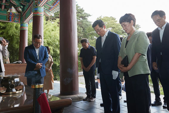 ¹Ú ½ÃÀåÀº ÃëÀÓ½ÄÀ» ¸¶Ä¡°í ¾Æ»ê½Ã ±¹¡¤¼ÒÀå µî°ú ÇÔ²² ÇöÃæ»ç¸¦ ¹æ¹®ÇØ Ãæ¹«°ø ¿µÁ¤¿¡ ÇåÈ ºÐÇâÇÑ µÚ ¹æ¸í·Ï¿¡ ¡®Ã湫°ø Á¤½ÅÀ» ¹Þµé¾î ½Ã¹ÎÀÌ ½Å³ª´Â ¾Æ»ê½ÃÁ¤ ¸¸µé°í ¼¼°è ¼ÓÀÇ ¾Æ»êÀ¸·Î ¹ßÀü½ÃÄÑ ³ª°¡°Ú½À´Ï´Ù¡¯¶ó°í Àû¾ú´Ù.