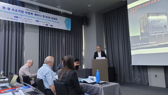 ÀÌ¾î ¹Ú±¸°ï Çѱ¹¿¡³ÊÁö±â¼ú¿¬±¸¿ø ½ÇÀåÀÌ ¡®Åº¼ÒÁ߸³À» À§ÇÑ Çѱ¹ Á¤ºÎÀÇ ¼ö¼Ò ¿¬·áÀüÁö ºÐ¾ß Á¤Ã¥ ¹æÇ⡯À» ¼³¸íÇßÀ¸¸ç, ¿µ±¹ Âü°¡±â¾÷ Áß ¿¡ÀÌ¿¡ÇÁ½Ã ¿¡³ÊÁö(AFC Energy)¿Í ÀÎÅÚ¸®ÀüÆ® ¿¡³ÊÁö(Intelligent Energy)°¡ ÀÚ»çÀÇ ¼ö¼Ò »ç¾÷ ÇöȲÀ» ¹ßÇ¥Çß´Ù.