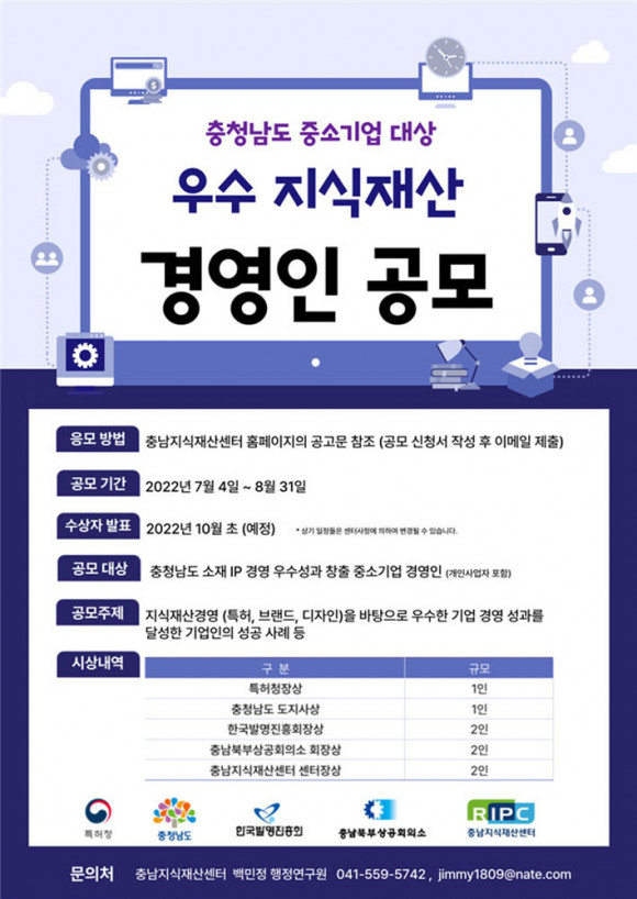 Ãæ³²ºÏºÎ»ó°øÈ¸ÀǼÒ(ȸÀå ¹®»óÀÎ), Ãæ³²Áö½ÄÀç»ê¼¾ÅÍ´Â Áö½ÄÀç»ê(IP) °æ¿µ Ȱµ¿À» ÅëÇØ ±¸Ã¼ÀûÀÎ ¼º°ú¸¦ µµÃâÇÑ Áß¼Ò±â¾÷À» ¹ß±¼ÇÏ¿© ¼º°ø ¸ðµ¨À» âÃâÇϰí, ±â¾÷ ³» Áö½ÄÀç»ê °æ¿µ Ȱµ¿À» È®»êÀ» Çϱâ À§ÇÑ ¡®Ãæ³² Áß¼Ò±â¾÷ ´ë»ó, ¿ì¼ö Áö½ÄÀç»ê °æ¿µÀΰø¸ð¡¯¸¦ °³ÃÖÇÑ´Ù°í ¹àÇû´Ù.