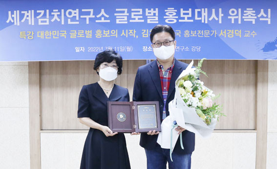 ÀåÇØÃá ¼ÒÀåÀº ¡°Çѱ¹ È«º¸Àü¹®°¡ÀÎ ¼°æ´ö ±³¼ö°¡ ±×µ¿¾È Çѱ¹ ¹®È¿Í ¿ì¸® ±èÄ¡¸¦ Áö۱â À§ÇØ ½ñÀº ³ë·Â¿¡ °¨»çµå¸®¸ç, ±èÄ¡ÀÇ °úÇÐÀû ¿ì¼ö¼º°ú ¹®ÈÀû °íÀ¯¼º¿¡ ´ëÇÑ È«º¸ Ȱµ¿À» ´õ¿í Ȱ¹ßÈ÷ ÇÒ ¼ö ÀÖµµ·Ï ÈûÀ» ½Æ°Ú´Ù¡±¶ó°í ÀüÇß´Ù.