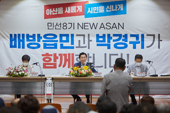 À̳¯ ¿¸°°£´ãȸ´Â ¡®¼ÒÅë°ú ÇùÄ¡¡¯¸¦ ÁßÁ¡ °¡Ä¡·Î ³»¼¼¿î ¹Ú°æ±Í ½ÃÀåÀÌ ½Ã¹Îµé°ú Á÷Á¢ ¸¸³ª ¹Î¼± 8±â ºñÀüÀ» ¼³¸íÇϰí, ½Ã¹Î¿¡°Ô Á÷Á¢ Áö¿ªÀÇ Çö¾ÈÀ» µè±â À§ÇØ ±âȹµÆ´Ù.