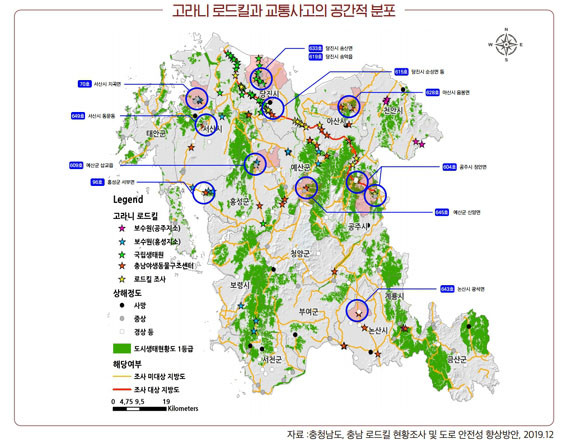 º¸°í¼¿¡ µû¸£¸é, Áö³ 2019³â ¸» ±âÁØÀ¸·Î Ãæ³² Áö¹æµµ 29°³ ±¸°£ Áß °í¶ó´Ï ·Îµåų ¹ß»ý »óÀ§ ±¸°£Àº 615È£(62°Ç, ´çÁø ÇÕ´ö~¼®¹®), 649È£(19°Ç, ¼»ê ºÎ¼®~´çÁø °í´ë), 70È£(18°Ç, û¾ç ¿î°î~õ¾È ÀÔÀå), 633È£(15°Ç, ´çÁø ¼Û¾Ç~¼Û»ê) µîÀ¸·Î ³ªÅ¸³µ´Ù.
