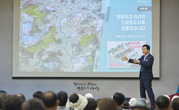¹Ú°æ±Í ¾Æ»ê½ÃÀåÀÌ ½Ã¹Î¿¡°Ô Á÷Á¢ ¹Î¼± 8±â ºñÀüÀ» ¼³¸íÇϰí, ´Ù¾çÇÑ Àǰ߰ú ¹Î¿øÀ» ûÃëÇϱâ À§ÇØ ±âȹµÈ ¿¸°°£´ãȸ´Â 17°³ À¾¸éµ¿º°·Î ÁøÇàµÇ°í ÀÖÀ¸¸ç µÐÆ÷¸éÀº ´Ù¼¸ ¹øÂ° Áö¿ªÀÌ´Ù.