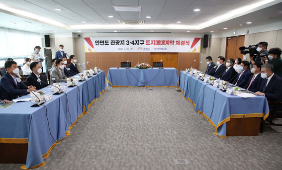 ±èÅÂÈì Áö»ç´Â ¡°À̹ø ÅäÁö ¸Å¸Å °è¾àÀº ¾È¸éµµ °ü±¤Áö Á¶¼ºÀÇ ÅÍ´× Æ÷ÀÎÆ®·Î, »ç¾÷ÀÌ »õ·Î¿î ±¹¸é¿¡ µé¾î¼¹À½À» ÀǹÌÇÑ´Ù¡±¶ó¸ç ¡°±×µ¿¾ÈÀÌ ¹Ø±×¸²À» ±×¸®°í »çÀü ÀýÂ÷¸¦ ÀÌÇàÇß´ø Áغñ±â°£À̾ú´Ù¸é, ÀÌÁ¦´Â ½ÇÁúÀûÀ¸·Î °³¹ßÀ» ÃßÁøÇÏ´Â ½ÇÇàÀÇ ½Ã°£¡±À̶ó°í ¸»Çß´Ù.