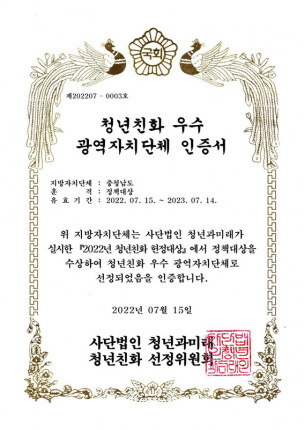 µµ, û³âÄ£ÈÇåÁ¤´ë»ó¼ ¡®Á¤Ã¥´ë»ó¡¯ ¼ö»ó