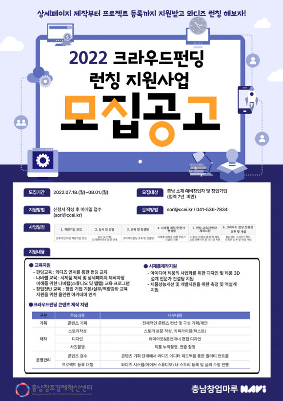 Ãæ³²Ã¢Á¶°æÁ¦Çõ½Å¼¾ÅÍ(ÀÌÇÏ Ãæ³²¼¾ÅÍ)´Â 7¿ù 18ÀϺÎÅÍ 8¿ù 1ÀϱîÁö ¡®2022³â Å©¶ó¿ìµåÆÝµù ·±Äª Áö¿ø»ç¾÷¡¯¿¡ Âü¿©ÇÒ ±â¾÷(¿¹ºñâ¾÷ÀÚ)À» ¸ðÁýÇÑ´Ù°í ¹àÇû´Ù.