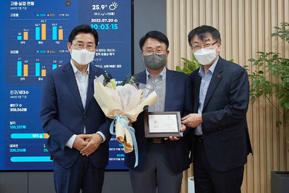 | | ¡è¡è ¡ã(¿ÞÂʺÎÅÍ)¹Ú ½ÃÀå, ³ë±¤È£ ´ëÇ¥, Á¤È¸¿µ »ç¹«Ã³Àå <»çÁøÁ¦°ø=¾Æ»ê½Ã> | ¨Ï ¿Â¾ç½Å¹® | | Ãæ³² »çȸº¹Áö°øµ¿¸ð±Ýȸ(ȸÀå ¼º¿ìÁ¾)°¡ Áö³ 7¿ù 20ÀÏ ¾Æ»ê½Ã(½ÃÀå ¹Ú°æ±Í)¸¦ ¹æ¹®ÇØ Ãæ³² »çȸº¹Áö°øµ¿¸ð±Ýȸ¿¡ 1õ000¸¸ ¿øÀ» ÁöÁ¤ ±âºÎÇϸç Ãæ³² 597È£(¾Æ»ê 33È£)·Î ¡®³ª´®¸®´õ¡¯¿¡ °¡ÀÔµÈ ³ë±¤È£ ¢ß¿¹¼úÁ¶°æµðÀÚÀÎ °øµ¿´ëÇ¥¿¡°Ô ÀÎÁõÆÐ¸¦ Àü´ÞÇß´Ù.