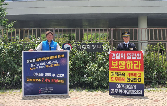 ¾Æ°ø³ë´Â ÀÌ¹Ì Áö³ 6¿ù 23ÀÏ ¡®2023³âµµ °ø¹«¿øº¸¼öÀ§¿øÈ¸ 1Â÷ ¼ÒÀ§¿øÈ¸¡¯ °³ÃÖÀÏ¿¡ ¸ÂÃß¾î, ¾Æ»ê½Ãû Çö°ü µîÁö¿¡¼ Ãâ±ÙÇÏ´Â ¾Æ»ê½Ãû °ø¹«¿øµé°ú ¹æ¹® ½Ã¹ÎµéÀ» »ó´ë·Î °ø¹«¿ø º¸¼ö 7.4% Àλó µîÀÇ Çʿ伺À» ¾Ë¸®´Â 1ÀÎ ½ÃÀ§¿Í È«º¸ Ȱµ¿À» Àü°³ÇßÁö¸¸, Á¤ºÎ´Â ³»³âµµ °ø¹«¿ø º¸¼ö ÀλóÆøÀ» 1%´ë °Çà 󸮷Π°¡´ÚÀ» Àâ°í ÀÖ´Â »óȲÀÌ´Ù.