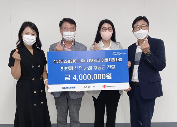 | | ¡è¡è ¡ã»ï¼ºµð½ºÇ÷¹ÀÌ ³ª´® Ű¿À½ºÅ© Ȱ¿ë ÈÄ¿ø±Ý Àü´Þ ±â³ä <»çÁøÁ¦°ø=¾Æ»ê½Ã> | ¨Ï ¿Â¾ç½Å¹® | | »ï¼ºµð½ºÇ÷¹À̰¡ Áö³ 25ÀÏ ¾Æ»ê½Ã(½ÃÀå ¹Ú°æ±Í)¿¡ ³ª´® Ű¿À½ºÅ©¸¦ ÅëÇØ ¸¶·ÃÇÑ Ãë¾à°èÃþ ¾Æµ¿ Áö¿øÀ» À§ÇÑ ±âºÎ±Ý 400¸¸¿øÀ» Àü´ÞÇß´Ù.
