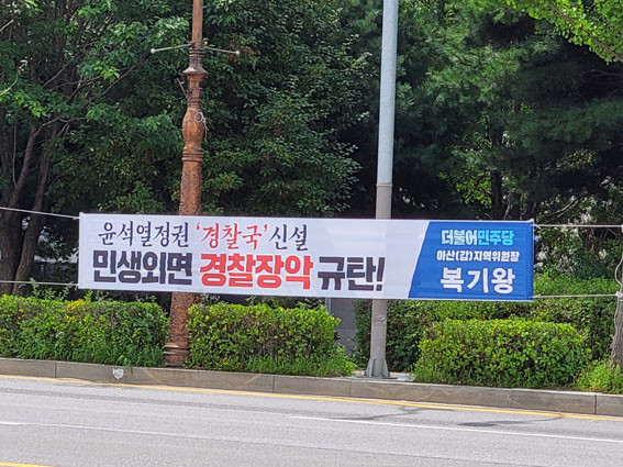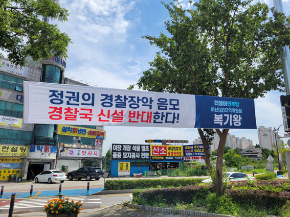 ¾Æ»ê°©Áö¿ªÀ§´Â Áö³ 7¿ù 27ÀÏ ¾Æ»ê½Ã¿¡ À±¼®¿ Á¤±ÇÀÇ °æÂû Àå¾Ç À½¸ð ÀúÁö¸¦ À§ÇÑ °æÂû±¹ ½Å¼³ ¹Ý´ë Çö¼ö¸·À» °Ô½ÃÇÏ¸ç ¿©·ÐÀü¿¡ ³ª¼¹´Ù.