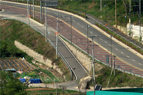 ´ÙÇàÈ÷µµ ¾Æ»êÀÇ ÇâÅä¹®ÈÀ¯»êÀ» °¨¾ÈÇÑ ¹è·Á¿´´ÂÁö µµ·ÎÈ®ÀåÀº ¹ÙÀ§¸¦ Ä§ÇØÇÏÁö ¾Ê¾ÒÀ¸³ª, ÇöÀçÀÇ ¸ð½ÀÀº ³²ºÏÀ¸·Î ¼ÒÅëÇÏ´Â ½Ã¿øÇÑ µµ·Î¿¡ °Å²Ù·Î ¾Ë¹Ú±â¶óµµ ÇÑ °Íó·³ µÕ±×½º·± ¹ÙÀµ¹ÀÌ °í°¹±æÀÇ ¿·±¸¸®¿¡ Äã ¹ÚÈù Çü»óÀÌ´Ù.