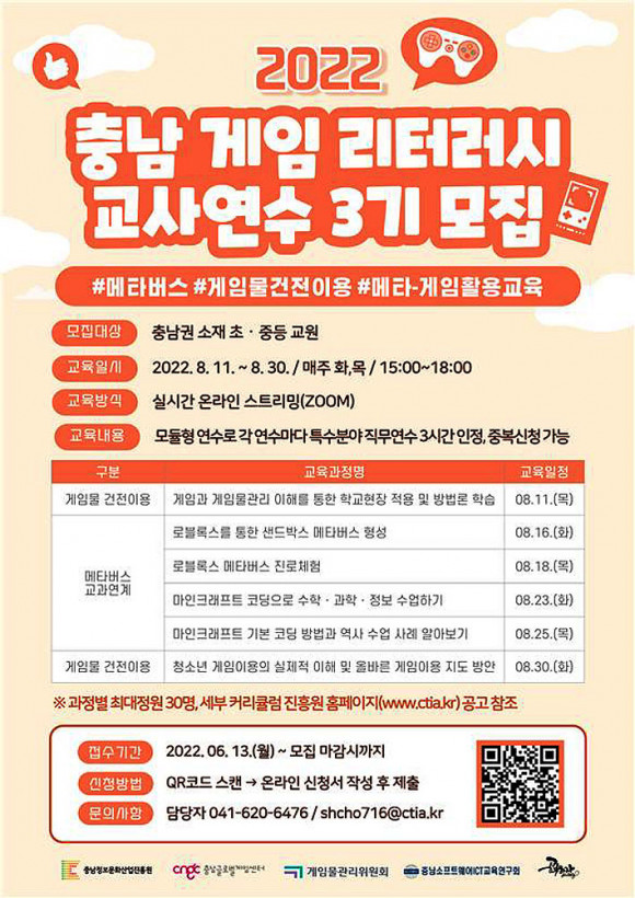 Ãæ³²Á¤º¸¹®È»ê¾÷ÁøÈï¿ø(¿øÀå ±èâ¼ö, ÀÌÇÏ ÁøÈï¿ø)ÀÌ ¿î¿µÇÏ´Â Ãæ³²±Û·Î¹ú°ÔÀÓ¼¾ÅÍ¿¡¼ 8¿ù 11ÀϺÎÅÍ 30ÀϱîÁö Ãæ³²Áö¿ª ÃÊ?Áßµî ±³»ç¸¦ ´ë»óÀ¸·Î ¿Â¶óÀÎ °ÔÀÓȰ¿ë±³À° ¿¬¼ö¸¦ ½Ç½ÃÇÑ´Ù.