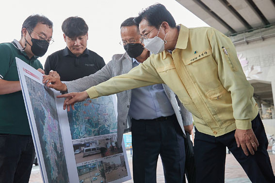 ¹Ú°æ±Í ½ÃÀåÀº À̳¯ °Ç¼³±³Åë±¹Àå, ¼öµµ»ç¾÷¼ÒÀåÀ» ºñ·ÔÇÑ ºÎ¼Àåµé°ú ÇÔ²² ÇØ´ç Áö¿ªÀ» »çÀü ¿¹ÂûÇÏ°í °ü°èÀÚµéÀ» °Ý·ÁÇϸç, µµ½Ãħ¼ö ´ëÀÀ »ç¾÷ÀÇ Á¶¼ÓÇÏ°í ¼¶¼¼ÇÑ ÃßÁøÀ» ´çºÎÇß´Ù.