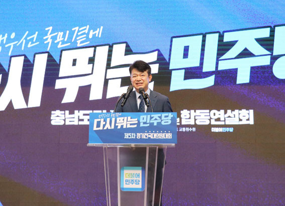 º¹±â¿Õ À§¿øÀåÀº À̳¯ ¼ö¶ô ¿¬¼³À» ÅëÇØ ¡°´ç¿ø ¿©·¯ºÐÀÌ ÈûÀ» ¸ð¾ÆÁÖ½Ã¸é ¿ì¸®´Â Ãæ³²¿¡¼ºÎÅÍ ½Â¸®ÇÏ´Â ¹ÎÁÖ´çÀ» ¸¸µé¾î³¾ ¼ö ÀÖ´Ù¡±¸é¼ ¡°Ãæ³²µµ´çÀÌ ´ëÇѹα¹ÀÇ Áß¿ø¿¡¼ µçµçÇÑ ¹öÆÀ¸ñÀÌ µÅ ½Â¸®¸¦ ¸¸µé¾î³¾ ¼ö ÀÖ°Ô Çϰڴ١±¶ó°í Æ÷ºÎ¸¦ ¹àÇû´Ù.