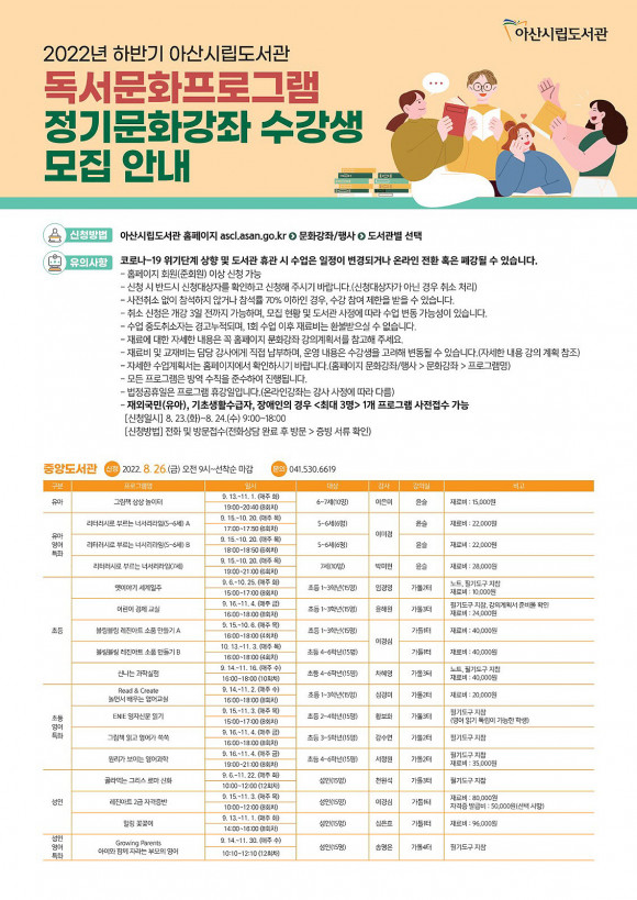 ÀÚ¼¼ÇÑ »çÇ×Àº ½Ã¸³µµ¼°ü ȨÆäÀÌÁö(ascl.asan.go.kr)¿¡¼ È®ÀÎÇϰųª ÀüÈ(041-530-6619) ¹®ÀÇÇÏ¸é µÈ´Ù.