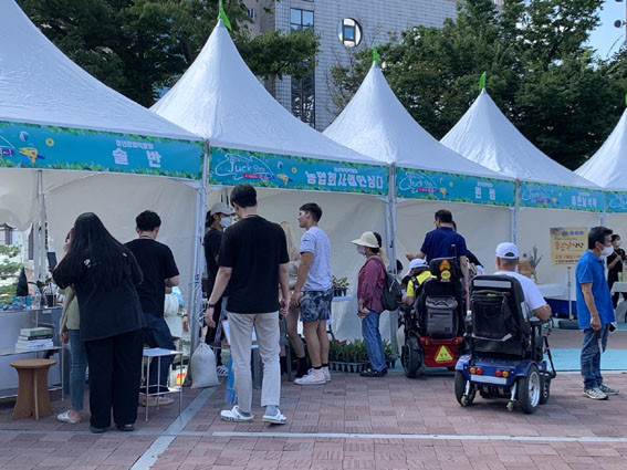 »ç¾÷ ¾ÆÀÌÅÛ È«º¸¿ë ºÎ½º¸¦ Â÷¸° ·ÎÄà ½ºÅ¸Æ®¾÷µéµµ ÀÖ¾ú´Ù. ¡®Ç¥½ÜÄÚµù¡¯Àº Àü±âÀÇ È帧À» ¾Ë ¼ö ÀÖµµ·Ï »ö±òÀÌ ÀúÀý·Î ¹Ù²î´Â LED¾ÆÅ©¸±Å°¸µ ¸¸µé±â üÇèÀ», ¼ö°æ ½Ä¹°À» Àü¹®À¸·Î ÇÏ´Â ¡®³ó¾÷ȸ»ç¹ýÀÎ ¢ß½É´Ù¡¯´Â ¹«Åä¾ç ¼ö°æÀç¹è °ü¿±·ù ½Ä¹° ÆÇ¸Å¸¦ ÁøÇàÇßÀ¸¸ç, ¡®ÁÁÀº³¯½ÄŹ¡¯Àº ¾Æ»ê¸¼Àº½Ò°ú ¾Æ»ê¹è·Î ¸¸µå´Â µðÀúÆ® ÆÇ¸Å µî È«º¸¡¤¸¶ÄÉÆÃÀ» À§ÇÑ ´Ù¾çÇÑ À̺¥Æ®¸¦ ÆîÃÆ´Ù.