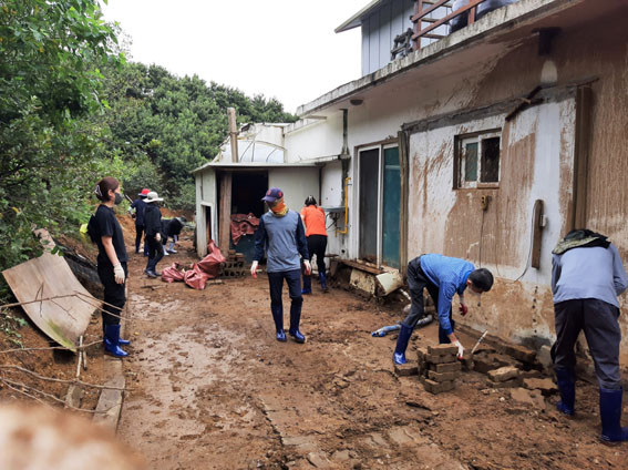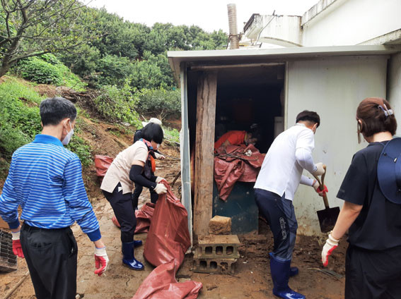 À̳¯ Âü¿©ÇÑ ±³À°»ý°ú Á÷¿øµéÀº Åä»ç¹° Á¤ºñ, Æó±â¹° ¼ö°Å, ħ¼ö ÁÖÅ᤽ü³ Á¤¸®, ¾²·¹±â û¼Ò µî ½Å¼ÓÇÑ º¹±¸¸¦ À§ÇØ 8½Ã°£ µ¿¾È ±¸½½¶¡À» Èê·È´Ù.