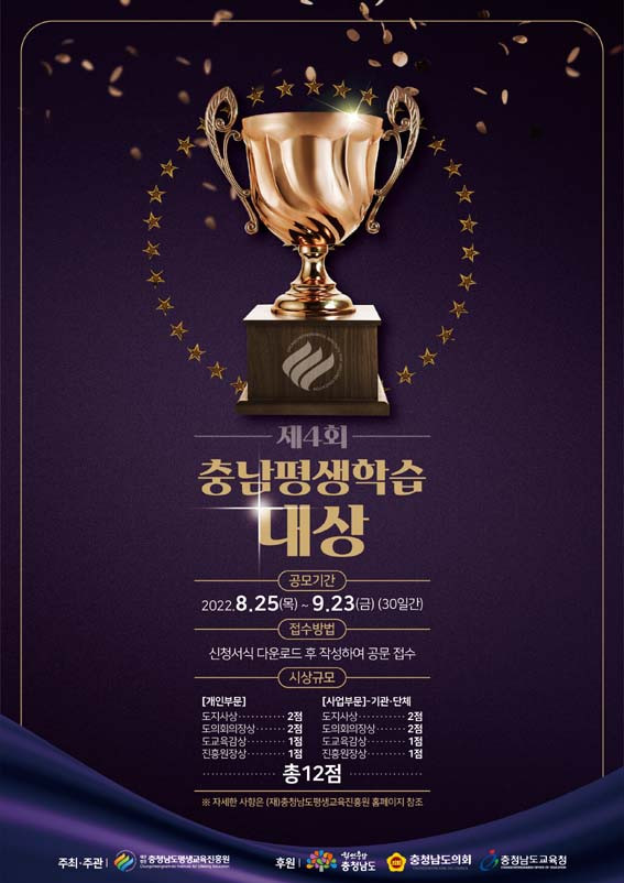 (Àç)ÃæÃ»³²µµÆò»ý±³À°ÁøÈï¿øÀº 8¿ù 25ÀϺÎÅÍ 9¿ù 23ÀϱîÁö (30Àϰ£) Á¦4ȸ Ãæ³²Æò»ýÇнÀ´ë»óÀ» °ø¸ðÇÑ´Ù.