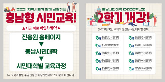 Ãæ³²½Ã¹Î´ëÇÐÀº µµ¹Î°ú Áö¿ª»çȸ°¡ ´õºÒ¾î ¼ºÀåÇÏ´Â Ãæ³²Çü ½Ã¹Î±³À°À» ¸ñÇ¥·Î Áö³ 2020³â 9¿ù, 4°³ ½Ã¹Î´ëÇÐ(°øÁÖ, ³í»ê, ´çÁø, ºÎ¿©)À¸·Î °³±³ÇßÀ¸¸ç, 2021³â 7°³ ½Ã¹Î´ëÇÐ(º¸·É, žÈ, ³»Æ÷ °³±³)À¸·Î È®´ë ¿î¿µµÆ´Ù.