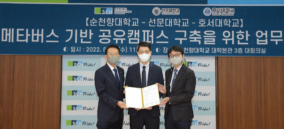 | | ¡è¡è ¡ã¼øÃµÇâ´ë À±¼ºÈ¯ ±âȹóÀå °â ´ëÇÐÇõ½ÅÁö¿ø»ç¾÷´ÜÀå(¿ÞÂÊ), ¼±¹®´ë ±ÇÁø¹é ±âȹóÀå °â ´ëÇÐÇõ½ÅÁö¿ø»ç¾÷´ÜÀå(°¡¿îµ¥), È£¼´ë ÀÌÁ¾¿ø ÇлçºÎÃÑÀå °â ´ëÇÐÇõ½ÅÁö¿ø»ç¾÷´ÜÀå(¿À¸¥ÂÊ)ÀÌ ¡®¸ÞŸ¹ö½º ±â¹Ý °øÀ¯Ä·ÆÛ½º ±¸ÃàÀ» À§ÇÑ ¾÷¹«Çù¾à½Ä¡¯À» ¸¶Ä¡°í ±â³äÃÔ¿µÀ» Çϰí ÀÖ´Ù. <»çÁøÁ¦°ø=¼øÃµÇâ´ëÇб³> | ¨Ï ¿Â¾ç½Å¹® | | ¼øÃµÇâ´ëÇб³(ÃÑÀå ±è½Â¿ì)´Â 8¿ù 31ÀÏ ¼øÃµÇâ´ë ´ëȸÀǽǿ¡¼ ¼±¹®´ë, È£¼´ë¿Í ÇÔ²² Áö¿ª ´ëÇÐ °£ ±³À°Çõ½Å ÇùÀÇü¸¦ ±¸ÃàÇÏ°í ¸ÞŸ¹ö½º ±â¹Ý °øÀ¯Ä·ÆÛ½º ±¸ÃàÀ» À§ÇÑ ¾÷¹«Çù¾àÀ» ü°áÇß´Ù°í ¹àÇû´Ù.