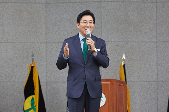 ¹Ú°æ±Í ½ÃÀåÀº ¡°¾Æ»êÀ» »õ·Ó°í ½Ã¹ÎÀ» ½Å³ª°Ô ¸¸µéÀÚ´Â ¹Î¼± 8±â ·Î°í°¡ ´õ ³ªÀº ¸¶À»À» ¸¸µç´Ù´Â ¡®»õ¸¶À»¡¯ÀÇ ÀÇ¹Ì¿Í »óÅëÇÑ´Ù¡±¸ç ¡°´õ¿í ¹ßÀüÇØ°¡°í Áñ°Å¿î ¸¶À»°øµ¿Ã¼¸¦ ¸¸µé¾î°¡±â À§ÇØ ³ë·ÂÇϰڴÙ. »õ¸¶À»ÁöµµÀںе鲲¼ Áö±Ýó·³ ÇÔ²² Èû½á ÁÖ½Ã±æ ¹Ù¶õ´Ù¡±°í ¸»Çß´Ù.