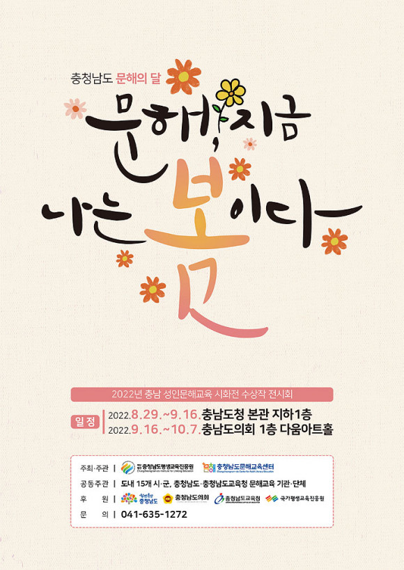 (Àç)Ãæ³²Æò»ý±³À°ÁøÈï¿øÀº ¡®Á¦7ȸ ¹®Çر³À° ÇѸ¶´ç¡¯À» ¸ÂÀÌÇÏ¿© 2022³â Àü±¹ ¹× Ãæ³² ¼ºÀι®Çر³À° ½ÃÈÀü ¼ö»óÀÛ Àü½Ãȸ¸¦ 10¿ù 7ÀϱîÁö Ãæ³²µµÃ» ÁöÇÏ 1Ãþ ¹× Ãæ³²µµÀÇȸ 1Ãþ ´Ù¿ò¾ÆÆ®È¦¿¡¼ ¿î¿µ ÇÑ´Ù°í ¹àÇû´Ù.